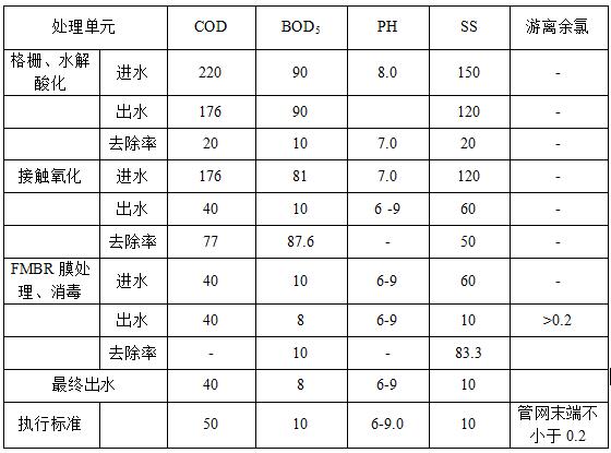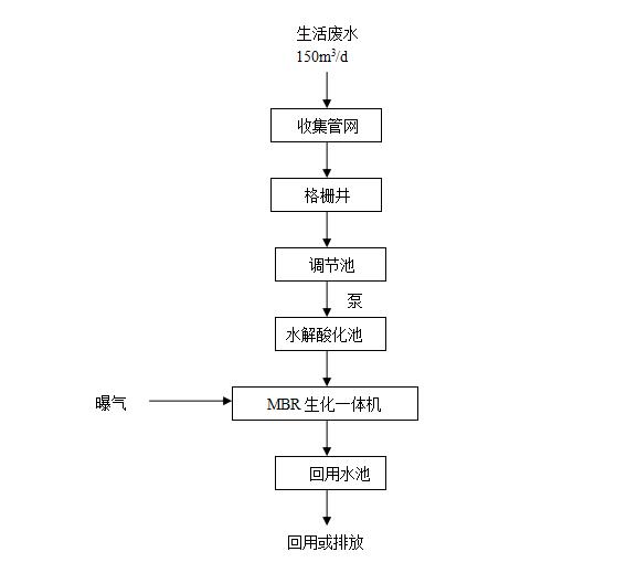 盛世桃城生活廢水經(jīng)收集管網(wǎng)收集后經(jīng)格柵井流入調(diào)節(jié)池,泵入水解酸化池,再流入MBR生化一體機(jī),一體機(jī)內(nèi)設(shè)水解酸化區(qū)、接觸氧化區(qū)、沉淀區(qū)、MBR反應(yīng)區(qū)和清水區(qū)。污水流入水解酸化區(qū),在自身厭氧生物菌的作用下,長鏈高分子有機(jī)物被水解為短鏈有機(jī)物或無機(jī)物,降低COD、BOD,然后流入接觸氧化區(qū),內(nèi)設(shè)置曝氣系統(tǒng)及生物填料,廢水在有氧狀態(tài)下,通過好氧微生物將廢水中有機(jī)物吸附、氧化分解為無機(jī)物,流入沉淀區(qū),沉淀去除微生物污泥,微生物污泥回流入水解酸化區(qū)和接觸氧化區(qū),提高微生物利用率,上清液流入MBR反應(yīng)區(qū),經(jīng)過MBR超濾膜截留微生物和大顆粒有機(jī)物,最后經(jīng)消毒處理,處理后廢水COD、BOD、SS達(dá)標(biāo)。